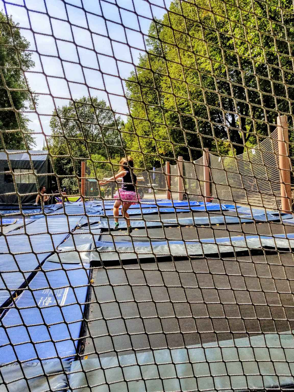 Unicorn ride, trampoline, bear-mall, and a cake shop mini-break in a park in Rīga.