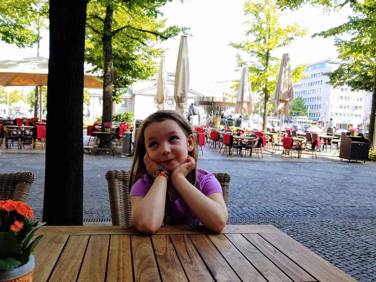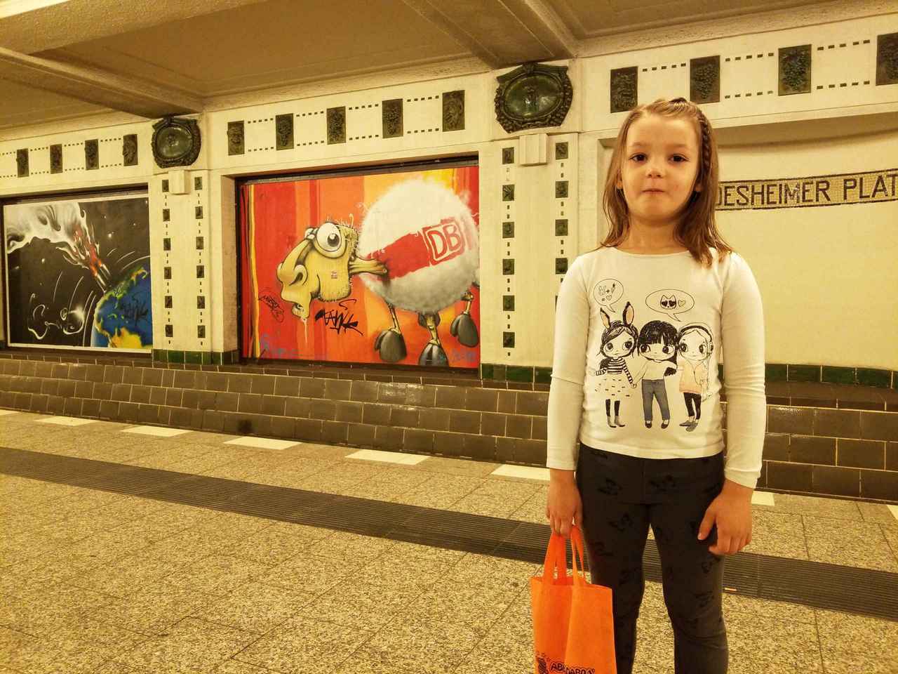 We live a block away from Rüdesheimer Platz. It's a large plaza with a garden, fountain, playground, and in summer, a wine garden. Apparently, the New York Times once described Rüdesheimer Straße as one of the most beautiful streets in Europe. It's not bad. Around the square are several restaurants, cafes, bakeries, a small grocery, a tea shop, a butcher, and various other local businesses. Hazel enjoys the artwork in the U-bahn station and the ice cream shop the most.