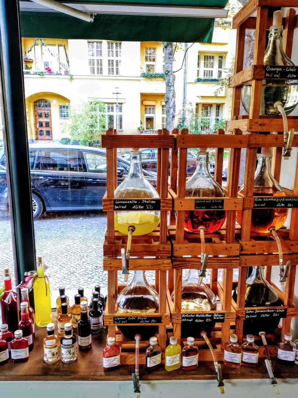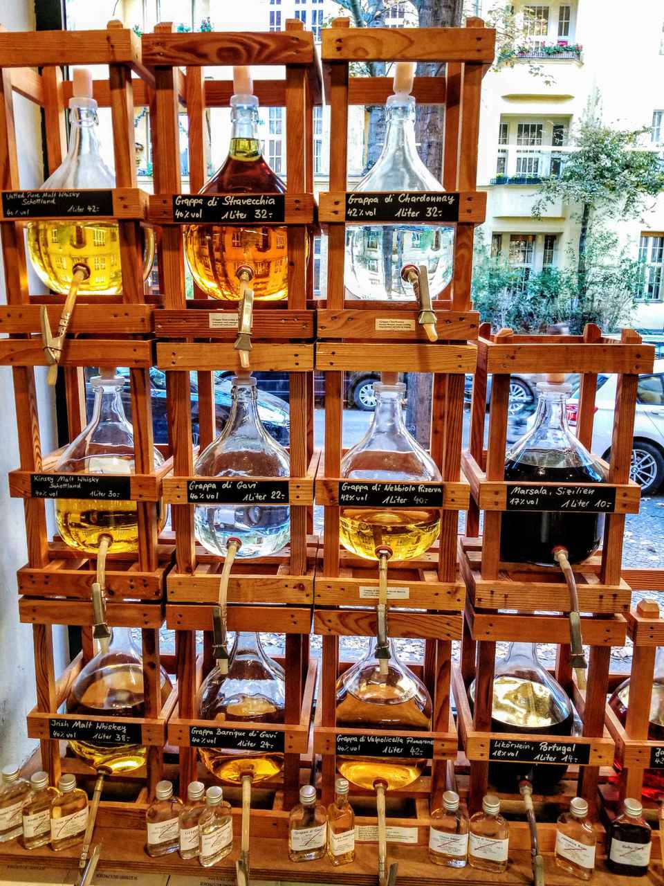 The nearest shop is directly across from our building is a well-known—and affordable—wine shop; you can get 1 L of a good German white for 6 euro, and they make their own schnapps. Excellent.
