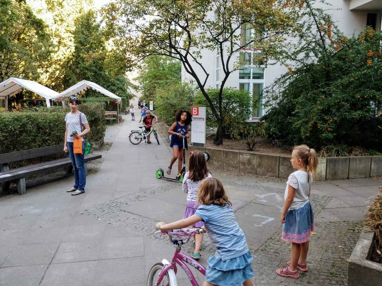 The best thing about the IBZ is how much Hazel loves it. There's a large internal courtyard where all the children in the building play. Hazel will spend hours playing in the courtyard, mostly unsupervised, with her friends. She's never had so much freedom and neither have we. There's also a club room with a piano and a teacher that visits once a week, so Hazel is now taking piano lessons on site; she also gets to attends bday parties and occasionally weekly concerts in the club room.