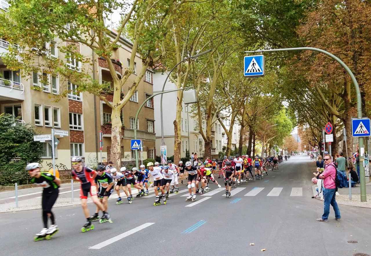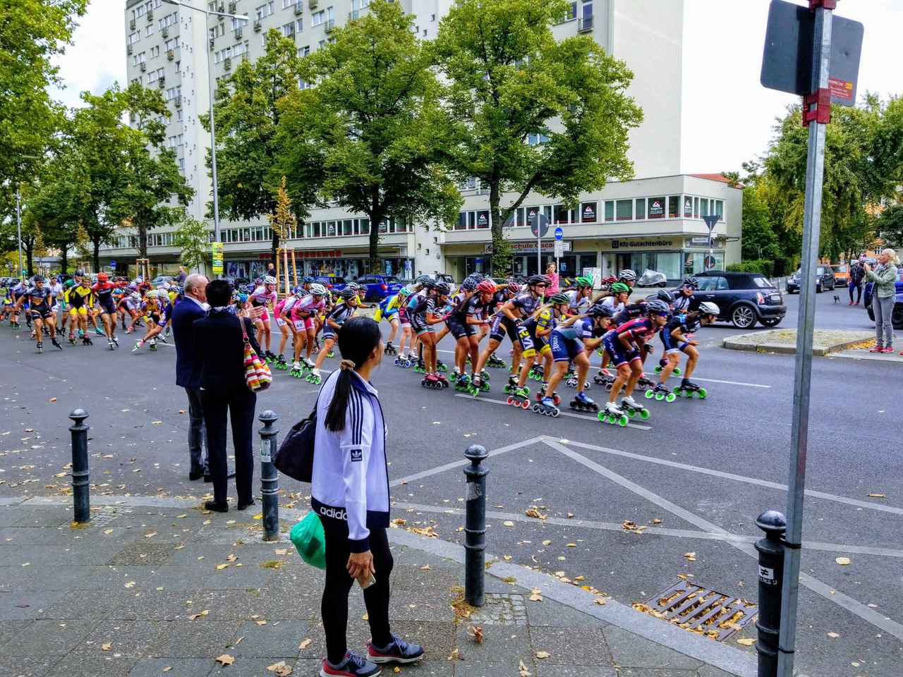 Berliners love their street events (particularlly this rollerblading marathon); kinder (feral and domestic), little old ladies, hipsters in lawn chairs slugging pilsner. All of them shouting enthusiastic encouragement, some spinning those clacker things, kazoos, beating on metal utility boxes with sticks.