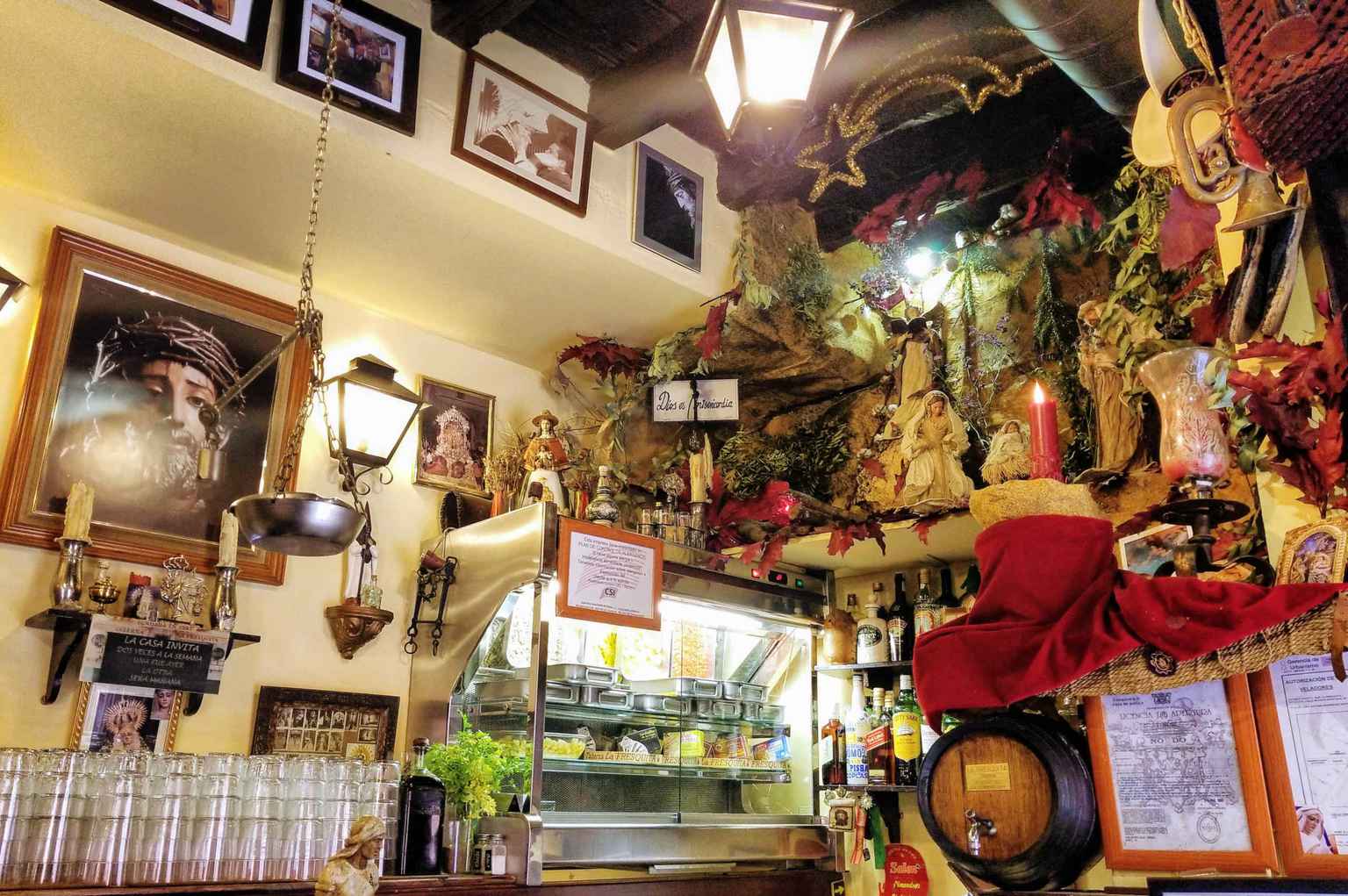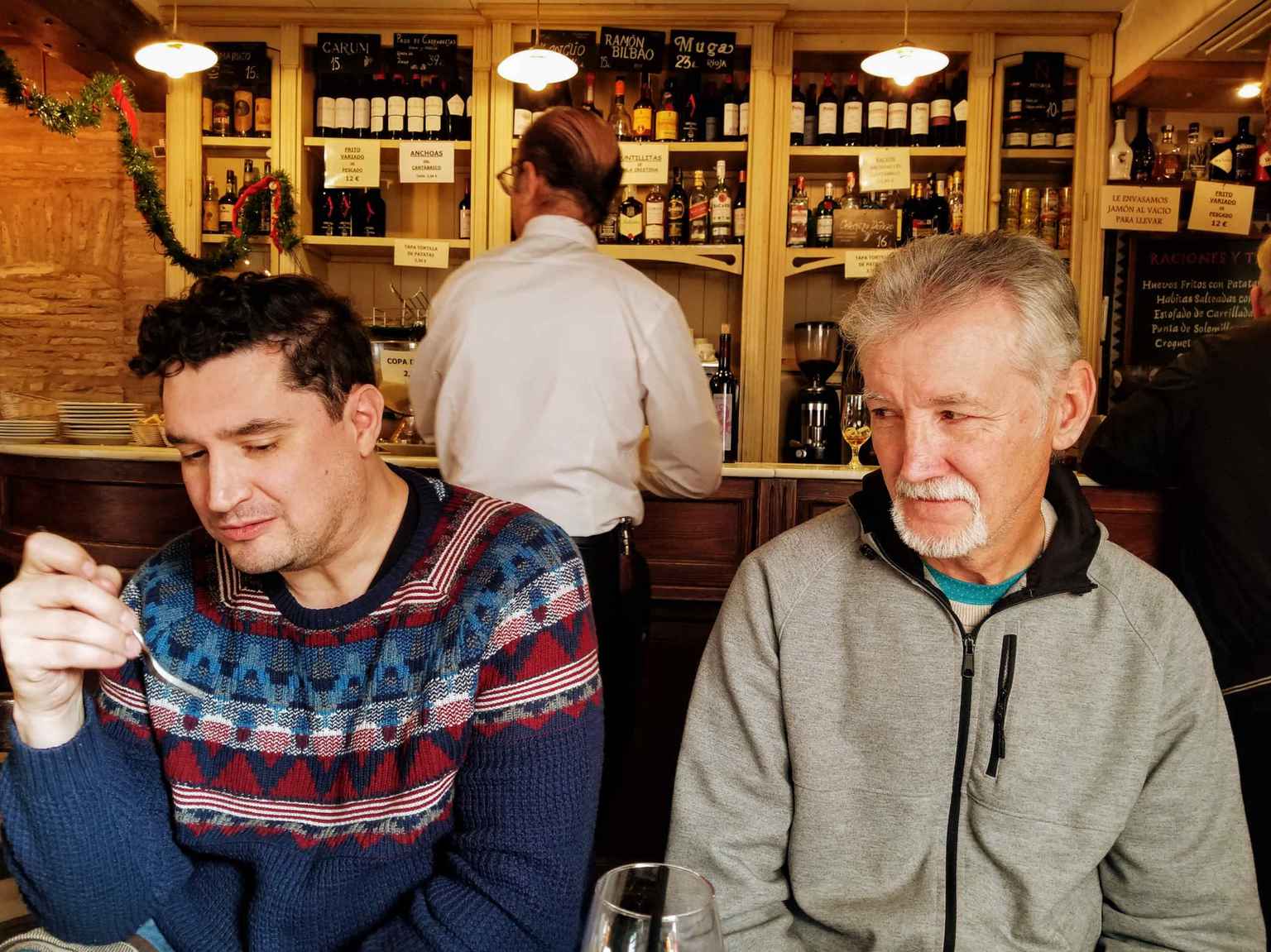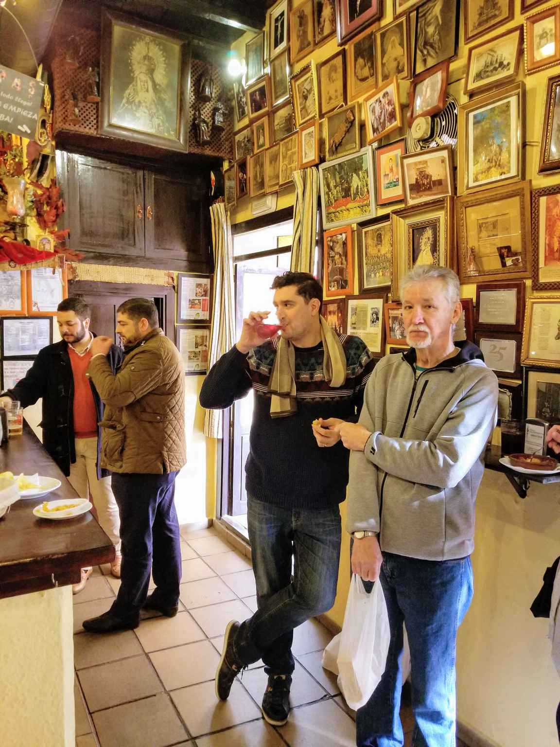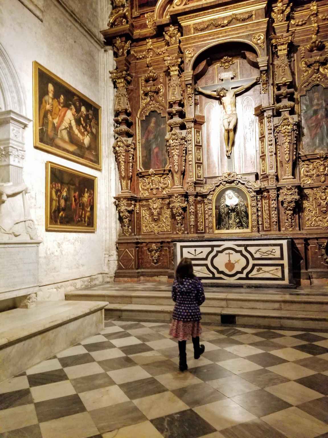We started our trip with Christmas Eve in Seville. Jen booked us into a four-hour food tour for our first morning. Although everyone tried to be a good sport, there was some not so great food and a bit of boredom, especially for the kiddo … and Grandpa. Our tour included a stop at La Fresquita a “Semana Santa” bar full of religious iconography celebrating Holy Week. The kid didn’t understand why we were surrounded by paintings of people wearing crowns of thorns and crying blood. Grandma’s explanations didn’t seem to resolve her questions. Apparently her “world views” religion class at JFKS is not preparing her for this stuff.