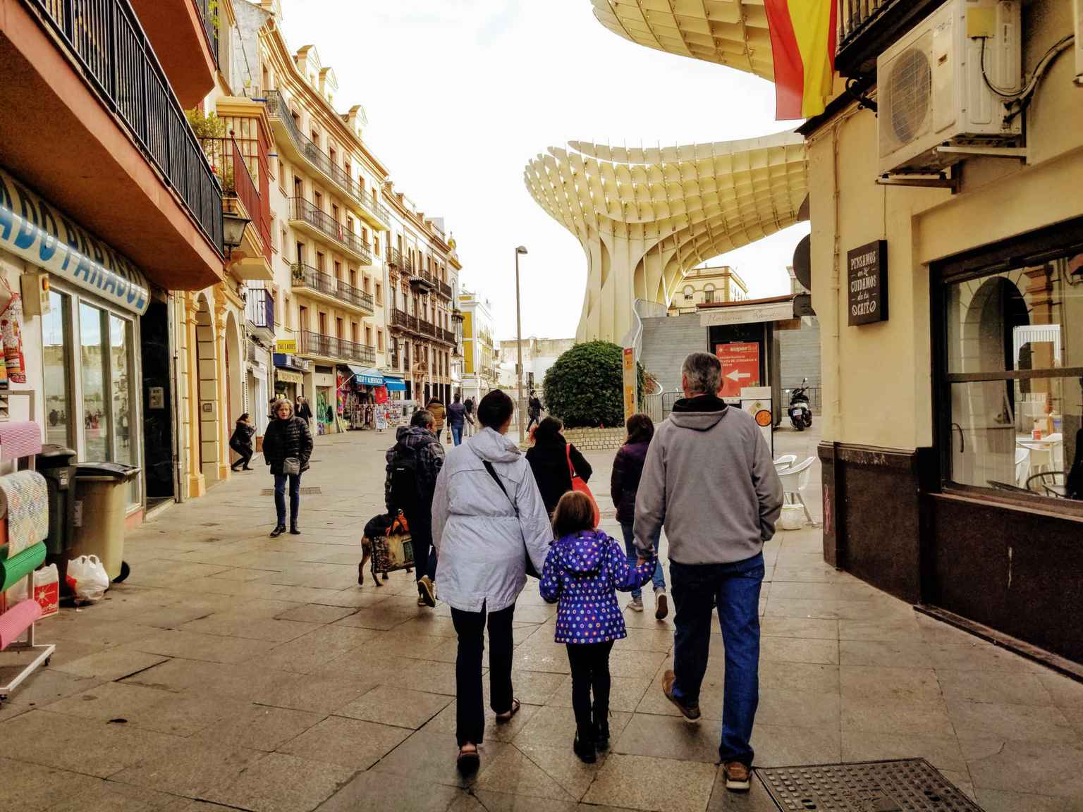We stayed right next to Metropol Parasol (aka "Las Setas" - the Mushrooms). Hazel enjoying using the rooftop as a race track.